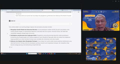 Pada paruh siang, fokus bergeser ke isu pembelajaran dan kepemimpinan sekolah. Dr. Agus Sukoco, M.M. (Ketua Umum APSI) menyajikan “Pembelajaran Mendalam Berbasis AI dari Perspektif Pengawas Sekolah.” Ia menegaskan AI sebagai mitra strategis untuk supervisi dan peningkatan mutu, agar pembelajaran lebih adaptif, kontekstual, dan berorientasi kompetensi abad ke-21. Disusul Dr. Drs. Asep Tapip Yani, M.Pd. (Dewan Pembina AKSI) dengan materi “Peningkatan SDM Kepala Sekolah Unggul, Kreatif, dan Berdaya Saing.” Ia menekankan kepemimpinan transformatif yang mampu mengintegrasikan kreativitas, teknologi, dan karakter dalam tata kelola pendidikan modern.