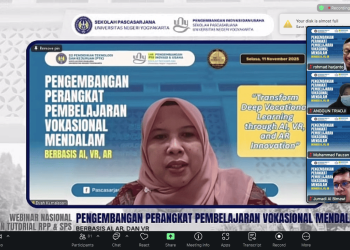 Selasa, 11 November 2025 Sekolah Pascasarjana Universitas Negeri Yogyakarta kembali menyelenggarakan Webinar PTK Series 2 dengan tema Pengembangan Perangkat Pembelajaran Vokasional Mendalam...