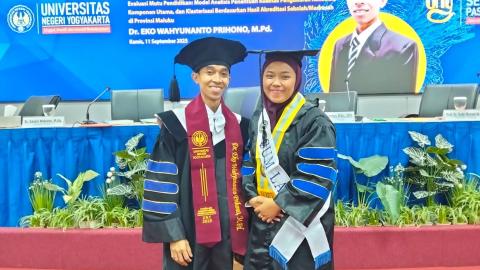 Sekolah Pascasarjana Universitas Negeri Yogyakarta (UNY) mencatat momen akademik yang istimewa dengan terselenggaranya ujian terbuka disertasi oleh dua mahasiswa Program Doktor (S3) Penelitian dan Evaluasi Pendidikan, Dr. Eko Wahyunanto Prihono, M.Pd., dan Dr. Fitria Lapele, M.Pd., yang juga merupakan pasangan suami istri sekaligus dosen di Universitas Islam Negeri (UIN) A.M. Sangadji Ambon. Keduanya melaksanakan ujian terbuka pada hari yang sama di Aula Lantai 3 Gedung Sugeng Mardiyono. Dr. Fitria Lapele memulai ujian pukul 07.30–09.00 WIB dengan disertasi berjudul “Pengembangan Model Evaluasi Program English for Specific Purposes pada Perguruan Tinggi” di bawah bimbingan promotor Prof. Dr. Aman, M.Pd. dan co-promotor Prof. Nur Hidayanto Pancoro Setyo Putro, Ph.D., serta tim penguji yang terdiri dari Prof. Dr. Siswantoyo, M.Kes., AIFO. (ketua), Dr. Sukarno, M.Hum. (sekretaris), Dr. Hj. Siti Jumaeda, M.Pd.I. dari UIN A.M. Sangadji Ambon, dan Prof. Dr. Margana, M.Hum., M.A.